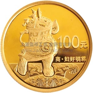 中国青铜器金银纪念币(第2组),以深沉、庄重的币面布局设计和丰满、繁复的远古纹饰,把中国青铜器威严、富丽、神秘而充满想象空间的气质特点作了一一展现,观之,令人神往、陶醉。该套金银币共5枚,其中金币2枚,银币3枚,均为中华人民共和国法定货币。其正面图案均为中华人民共和国国徽,并刊国名、年号;背面图案分别选取了商代司母辛方鼎、妇好鸮尊、妇好偶方彝、司母辛觥和妇好方斝等五种商代晚期最具代表性的青铜器,币面上的每件青铜器均衬以该器物自身的纹样作为背景装饰,如此的匠心独运使五件经典青铜器的独特气质都达到了几近完美的表现。从这组金银币上,我感觉到了一股穿梭于历史和现实之间的浑厚力量。我想,这也许是设计师在运用现代思维对青铜文化进行解读,也许更是为了追寻那股浑厚力量的根源吧。