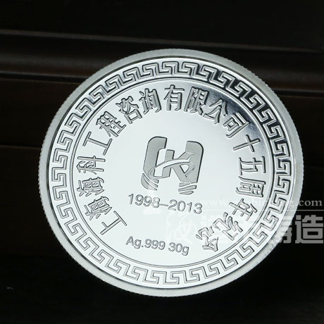 海科工程咨询十五周年纪念章定制 奖章 银条定做 奖章制作 纪念章制作 / 人气:
