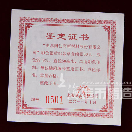 工艺:上海造币工艺、彩印