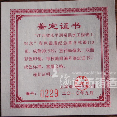 乐平润泉供水工程竣工纪念彩印纯银章定制 奖章 纪念章定制 奖章制作 纪念章制作 / 人气: