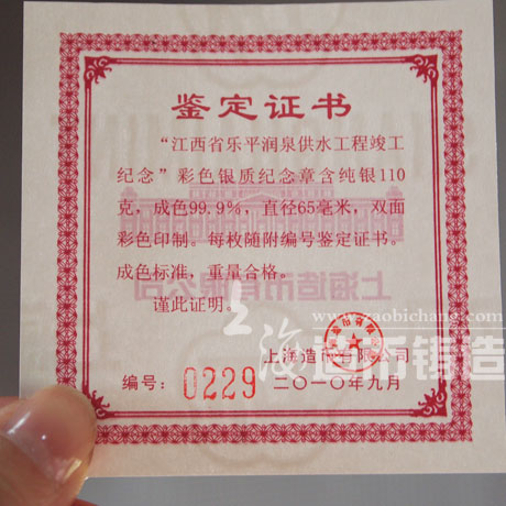工艺:上海造币工艺、彩印