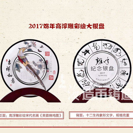 鸡年生肖500克银盘定制 纯银盘定做 彩色银盘定做 鸡年银盘 / 人气: