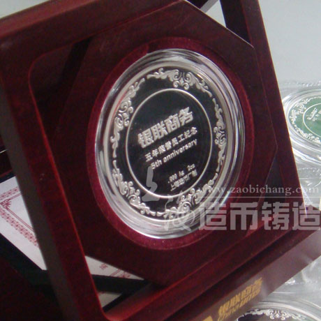企业定制纪念章一般都是金银纪念币,受潮之后很容易发生锈蚀。所以,我们存放金银纪念章要放在干燥的时候,远离潮湿的环境,存放在密封盒里的纪念币,最好不要拆开盒存放,以免受潮腐蚀。