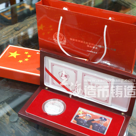 福建省漳浦局110指挥大楼落成委托上海造币有限公司(原上海cmp冠军体育)定制银章,纪念落成。