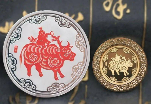 2021年是辛丑牛年,为庆祝新年、传承民族经典,北京开元中国金币经销中心发行了牛年生肖圆形纪念章(含金、银、仿古银、仿古铜纪念章)。