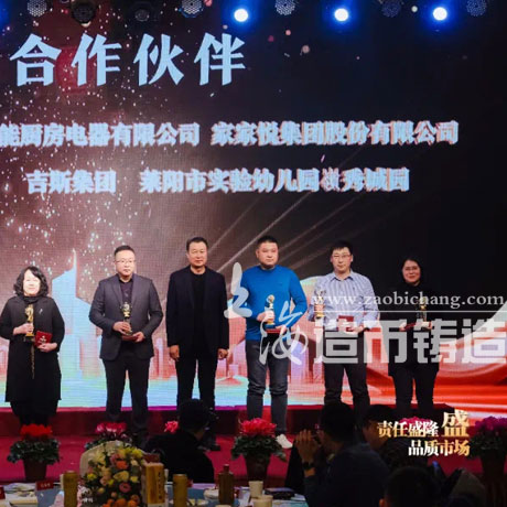 为纪念这一时刻,盛隆集团委托上海聚金堂,定制一款作为颁奖答谢礼,银章材质银50克,含银量999‰,直径50毫米,正面雕刻盛龙集团标志和“责任盛隆·品质地产”字样,背面雕刻楼群图案及“感恩有你,一路相伴”字样,银章整体设计简约大气,契合盛典主题,纯银材质,历久弥新!