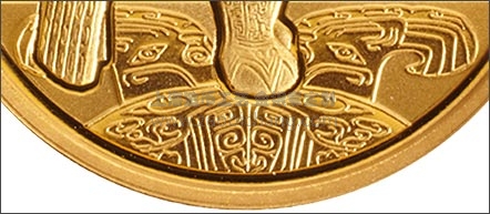 此次发行的中国青铜器金银纪念币(第2组)就涉及了多种图案与纹饰,单纹饰就包括兽面纹、乳钉纹、蝉纹、羽纹、倒夔纹、雷纹、龙纹、虎形纹等,其中尤以1/4盎司金币商代妇好鸮尊上的纹饰最为繁复不穷,令人叹为观止。这些纹饰和表现手法,已经形成了独有的风格,并且这些纹饰的创造和运用,都具有了各自特殊的存在意义。