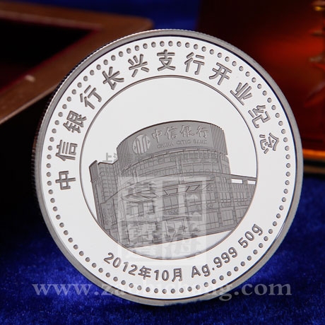 浙江中信银行长兴支行开业纪念银章订做 奖章制作 纪念章制作 / 人气: