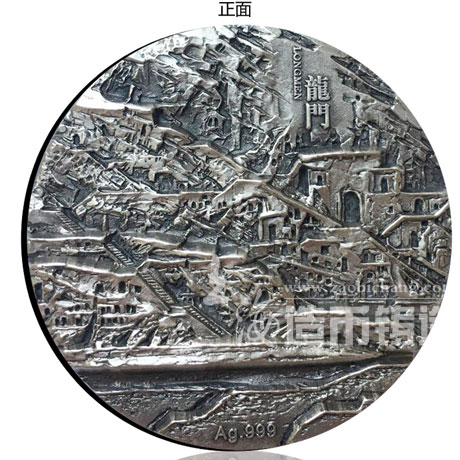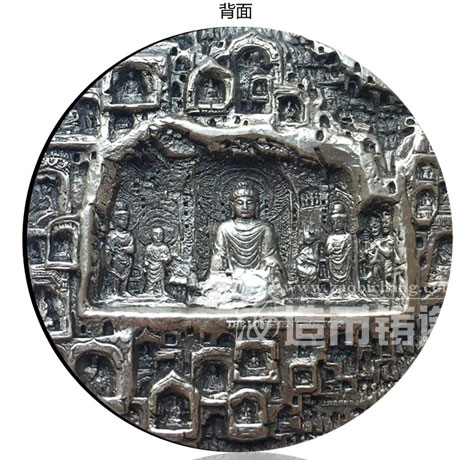 龙门石窟2盎司银章 ——直径:40mm、重量:62克、材质:纯银、工艺:硫化