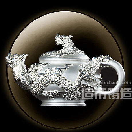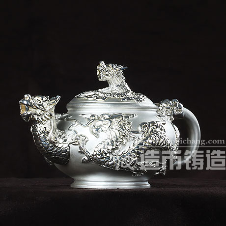 纯银浇铸五龙银壶 定制银茶壶 纯银茶壶定制 定做银壶 纯银壶定做 纯银茶具定制    /     人气: