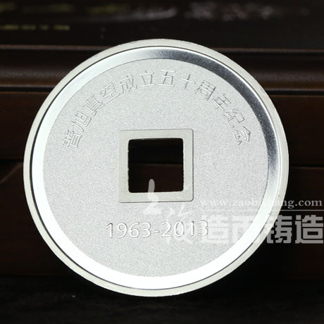 用压印成的金银币,再冲去中间的方孔,替代古代的钱币铸造的办法,现代纪念章定制仿制古代的方孔钱。如1998年发行的大唐镇库金钱金银纪念币。