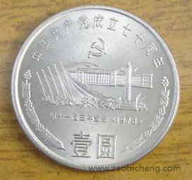 在1991年的时候是中国共产党成立70周年的重要日子,央行为了纪念这一天重要的日子,也是一个历史的大事件,中央银行决定在91年的时候发行1元纪念币,这款纪念币的正面是中华人名共和国的国徽以及中华人民共和国国名还有发行年号,背面的图案有三种,分别刊印在三枚纪念币上。第一枚的图案是第一次全国代表大会的会址,第二枚是遵义会议的会址,第三枚的图案是第一届三中全会的会址以及面额。