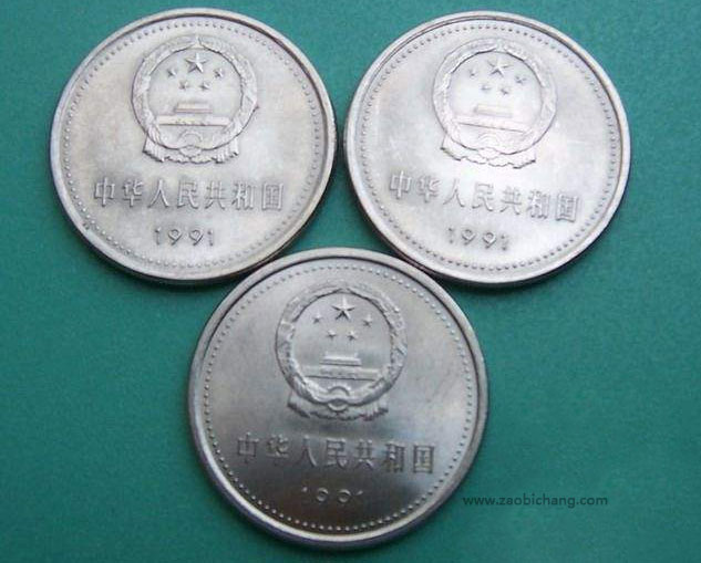 从图案的设计上可以了解到,91年1元纪念币一共包括三枚。每一枚的面值都是一元,利用铜芯镀镍的材质制作而成。最大的发行量发行了三千万枚,可以说数量并不多。一套纪念币的面值是三元,经过了二十多年的发展,市场价格没有太大的上涨趋势,但是发展比较平稳,大概上涨了十倍左右。