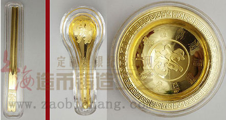 聚福三宝金碗金勺金筷三件套定制 / 人气: