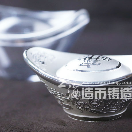 3、浇铸。定制金银币由于各种“银锭”成型时氧的释放,当浇铸银水时,所产生的气体逸出,就在“银锭”侧面或底部产生了气孔。虽然有气孔,对‘银锭’来说,使得它不太美观,但是,正是这种气孔,成了我们鉴定真伪“银锭”的重要依据。气孔较深,定制金银币孔内圆润光亮、有神,说明成色高;反之,则成色较低。