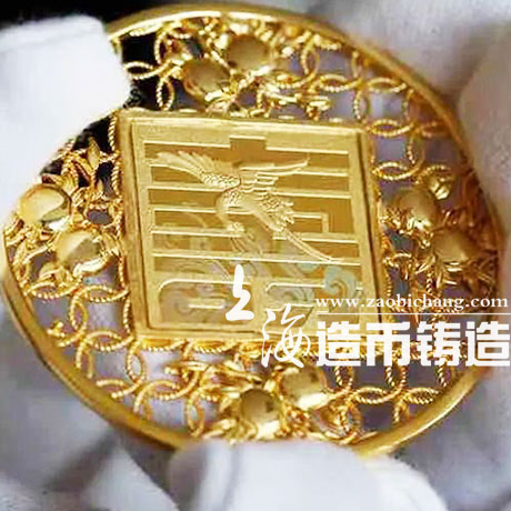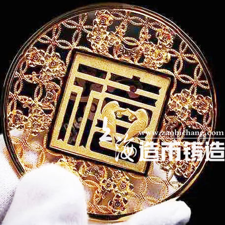 花丝章工艺来头不小,花丝工艺,是将“花丝”进行再加工的制作过程称为花丝,即:掐、填、攒、焊、堆、叠、织、编、点翠等。花丝工艺由于用料珍奇,工艺繁复,因此花丝镶嵌再历史上只是皇家御用之物,其工艺再我国历朝历代的宫廷视频和礼器上均有呈现,也是我国传统奢侈品的工艺特色之一。花丝工艺被运用到中国纪念章制作之上,非常具有收藏价值。