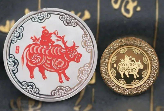 2021年是辛丑牛年,为庆祝新年、传承民族经典,北京开元中国金币经销中心发行了牛年生肖圆形纪念章(含金、银、仿古银、仿古铜纪念章)。